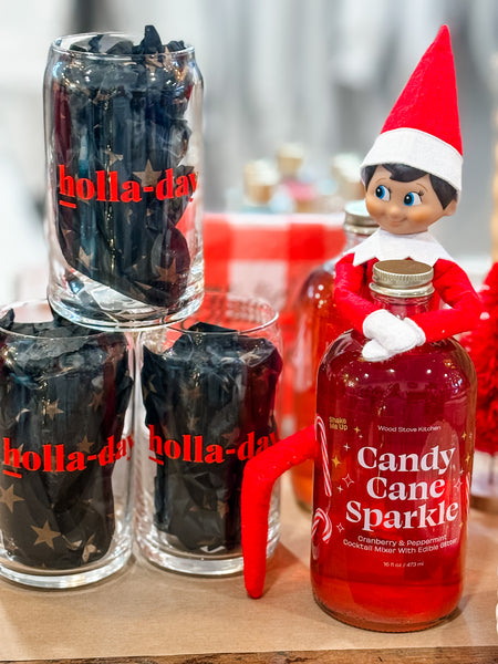 Let the festivities begin with The M R K T ‘ S custom holla- day glass! Sip your favorite beer or bev out of this cute glass!