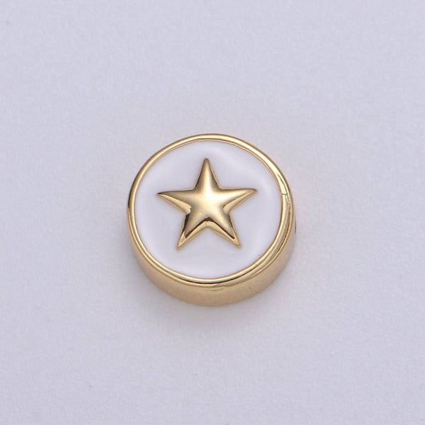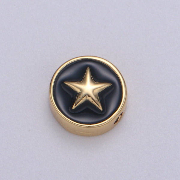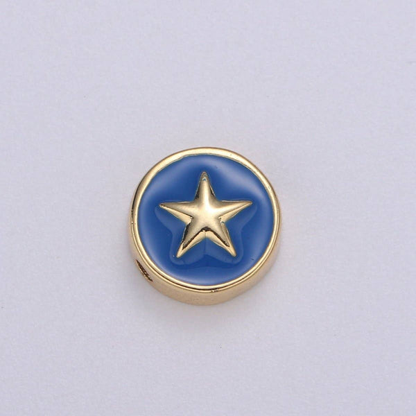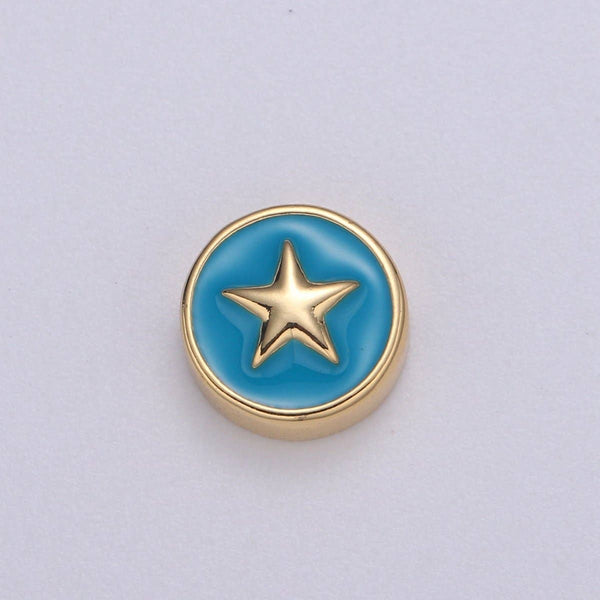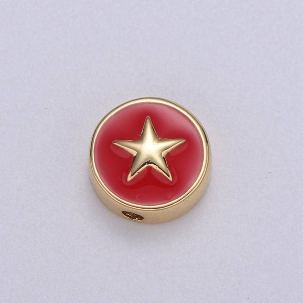 Round Enamel Tiny Gold Star - 24k Gold filled Round Beads - 10mm beads for bracelet making supply Celestial Jewelry making B-471 to B-475: Orange