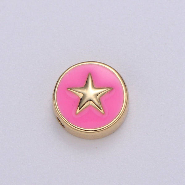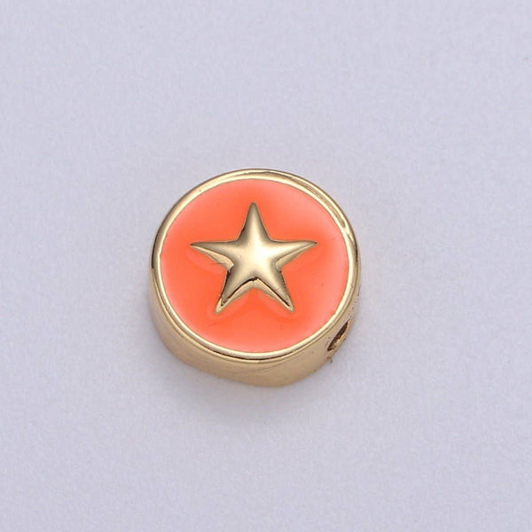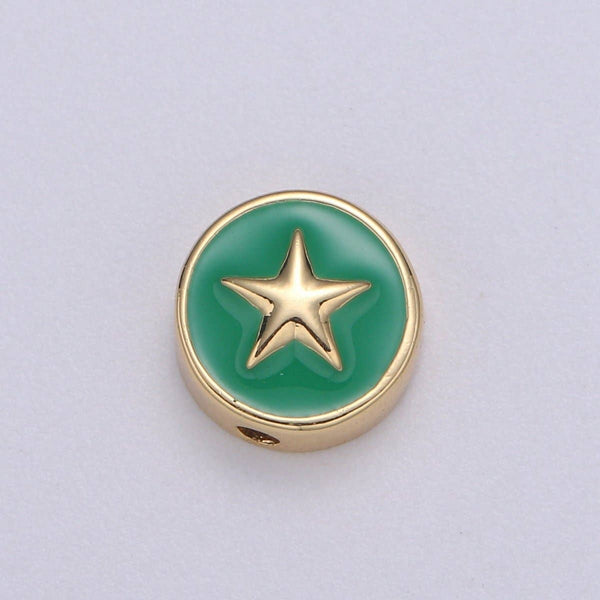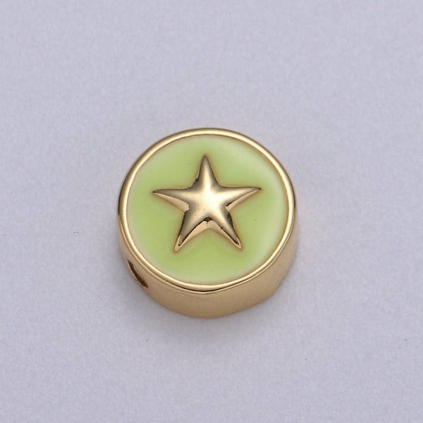 Round Enamel Tiny Gold Star - 24k Gold filled Round Beads - 10mm beads for bracelet making supply Celestial Jewelry making B-471 to B-475: White